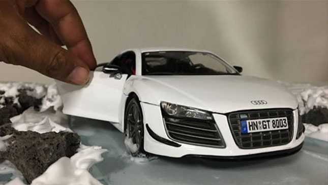 The Audi shoot isn't the first time that Rodriguez has used scale models to bring life to his art. Aside from other works with toy cars, his portfolio includes the use of miniature planes, toy boats, and even Star Wars figurines to achieve the same realistic effect. If you're a budding photographer, his work is certainly worth studying.