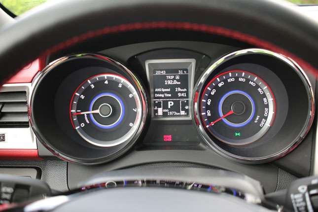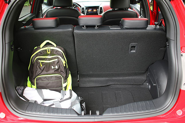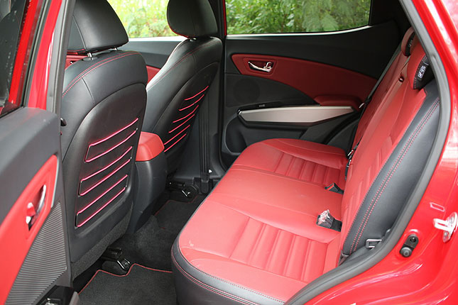 The designers could have held back a bit on the interior though, as the bright-red accents of the "Sport R" variant begin to look a little too much after a few days. Just considering the ergonomics, however, the cabin is a nice place to be in. Good sightlines all around, lots of headroom, firm seats, and every surface having a nice tactile feel about it just like any recent Hyundai or Kia. I love the flat-bottom steering wheel and the aluminum trim. There's even an honest-to-goodness handbrake instead of the usual footbrake. You never know when you'll need to yank it to effect a J-turn.