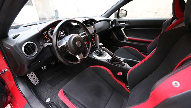 4. You never notice how roomy your own car is. Until you spend time cooped up in an 86, that is. The only thing tighter than an 86 in its price bracket is a Mazda MX-5. That said it's still a selfish car. Trunk space is just adequate for a small cooler and several soft bags if you fold down the vestigial rear seatback. The cockpit is bereft of shelves, cubbyholes and places to put your sunglasses, phone, and miscellaneous junk. My wife gave me the evil eye when I suggested she place her bag on the floor. This was after she successfully contorted herself into the shotgun seat; good thing she does yoga. To the uninitiated, you don’t so much sit down in an 86 as you attempt to gracefully fall into it.