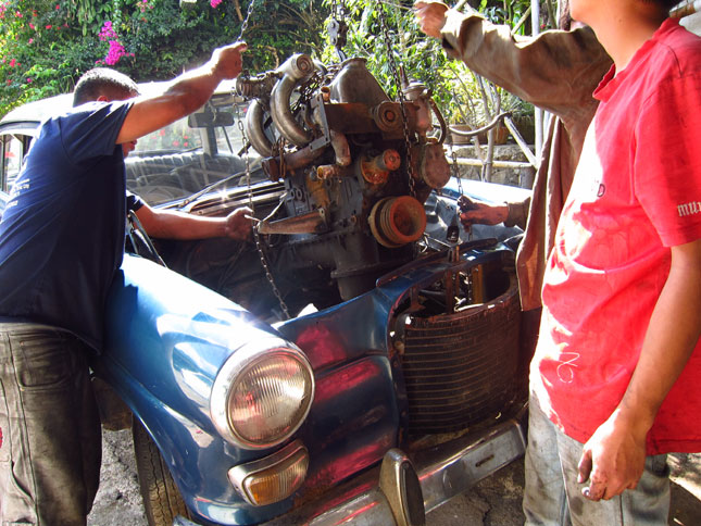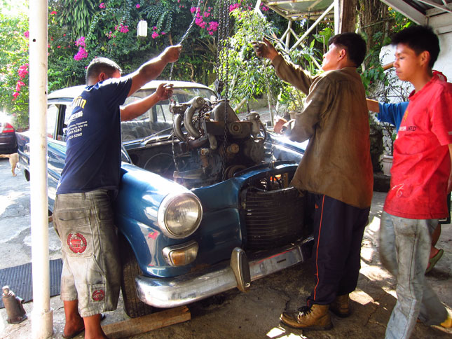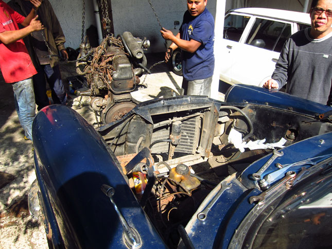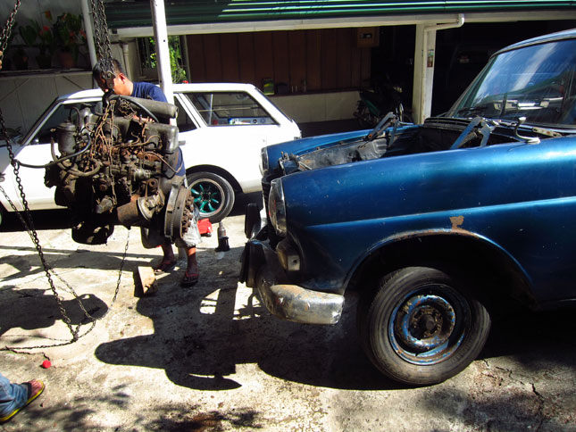 With that out of the way, it was time to get down to the harder stuff. Before the Fintail could be pulled out of the very steep driveway of our house in Baguio, some weight had to be shed. This was for safety as I didn’t want the rusty tow points to fail while the car was being pulled up. And since I had no plans of using the old engine anyway, I might as well just remove it. I brought some mechanics to the house and then got to work.