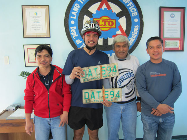I hopped on my bicycle and headed to the LTO office in La Trinidad, Benguet, to make sure that the plates, which had been surrendered for storage back in 1992, were still there. They were.
