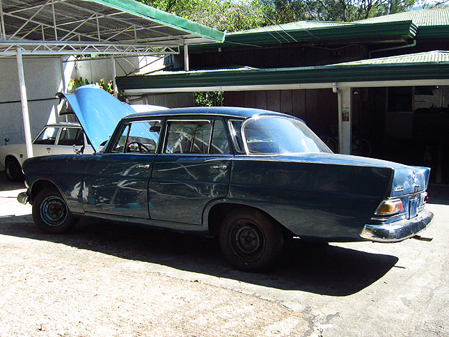 My vision for the Fintail was to retain its patina, you see. I was to repair all of the rust, of course, but for the most part, I wanted to keep the car looking just the same. I would polish all of the chrome bits, drop in an OM617 motor from a G-Wagen into the super-detailed, painted and polished engine bay, and lower the ride height just a bit. The pièce de résistance would be slapping on a set of widened, 15-inch steel wheels shod with some meaty rubber (with raised white lettering) on all four corners. It would be so sweet.