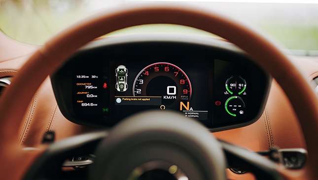 It’s sometimes in the littlest things that you realize this. The Audi is as easy to jump into and maneuver as a garden-variety Japanese sedan. Which doesn’t mean that the McLaren is hard to drive. The steering, though, is just that bit heavier, the transmission isn’t as immediately intuitive (it’s operated via buttons on the center console), and the graphics on the reversing camera are low-res and less informative.