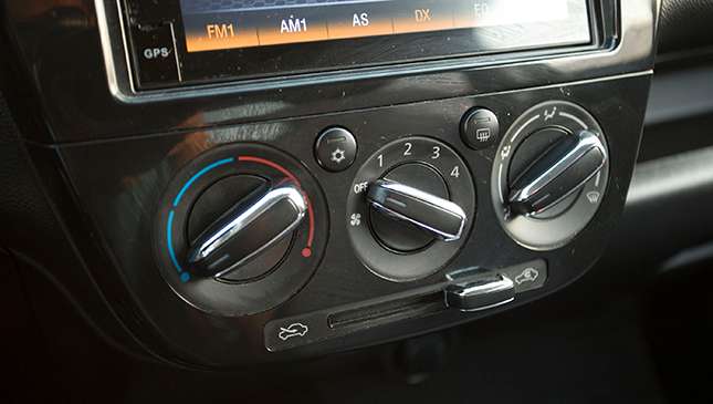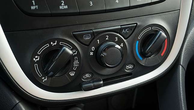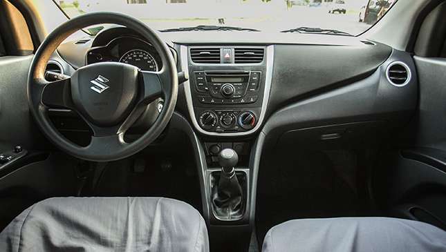 On the inside, however, that boxiness pays off. The Celerio has much more headroom than the Mirage does, and the extended wheelbase gives it legroom that’s only a finger or two shy. Gone is the gimmicky motorcycle instrument pod, replaced by a full gauge cluster. Fit and finish marginally betters that of Mitsubishi; we’re still undecided if the plasticky finish on the door panels counts as ‘fabric.’ Console storage wins over the Mirage, with multiple shelves that don’t force you to wedge gadgets under the dash or in inadequate door pockets. On the debit side, the narrow cabin means the front cupholders sit below the seats rather than by your knees, and the rear bench is a tight fit for three.