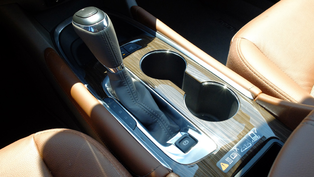 The dashboard design is flowing and elegant, and features some attractive metal trim around the A/C vents and instrument cluster. Meanwhile, the shift knob and central cup holders are surrounded by some convincing faux wood trim. The space is good, too, with plenty leg room for two grown adults and just enough for three.