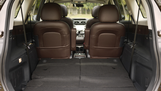 A split second row limits seating to six. Both buckets sport Isofix and top tethers, but the fixed center console box means you have to fold down a seat to access the rear. Third row legroom is tight, but acceptable for medium-sized children, with generous headroom. The cargo bay is slightly narrower and somewhat lower than in the Innova, but the fold-flat third row actually gives it more usable space.