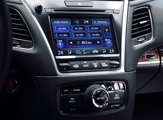 The all-new Legend represents a jump of three generations. Like its predecessor, it is packed with technology. For starters, it is a gasoline-electric hybrid. Push the starter button and the engine doesn’t actually start. Rather, the electrical system powers up, and a small green light indicates ‘Ready.’ Push the D transmission button and the Legend can now roll out, silently powered by batteries and electric motors. As with other hybrids, the gasoline engine kicks in once the car is up to speed or if more power is needed for acceleration. So far, pretty standard hybrid fare.