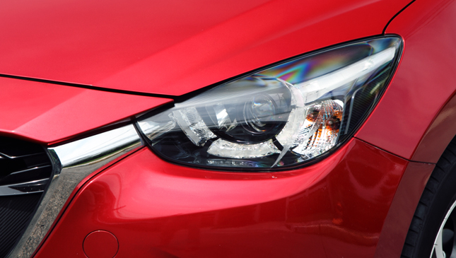 Once you get used to the brightness of bi-xenon headlamps, halogen headlamps simply look dim. Stability control and ABS brakes are standard. Brake feel in the 2, with its four-wheel discs, is excellent. The confidence extends to the handling. The quick steering ratio means you hardly have to remove your hands from the nine and three o’clock positions in most turns. The way it tracks the driver’s intended line gives the proper tingles of driving pleasure.