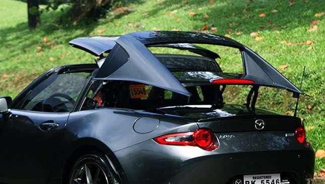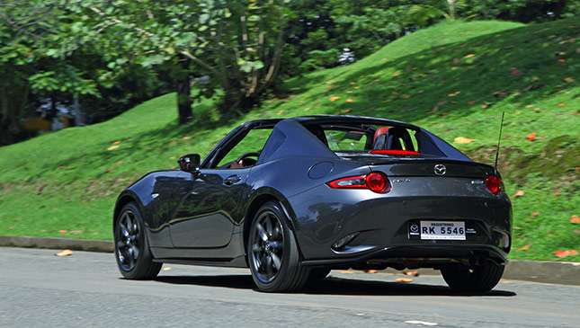 While you’d expect the RF to be a fraction slower, there doesn’t seem to be any disadvantage to the 2.0-liter Skyactiv mill’s performance. That said, you’ll have to manage your expectations if you want the six-speed manual ’box available in the soft-top, because the RF only comes with an automatic. Can’t blame the local distributor, though—about nine out of 10 MX-5s sold here come with the slushbox, so bringing in only the automatic simplifies everything. It’s actually a good system, and you have paddle shifters and a Sport mode to augment that sporty feel. Besides, with our worsening traffic situation, the two-pedal variant is sounding more practical.
