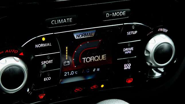 When the Dynamic Control System isn’t displaying the A/C controls, the drive-mode selector can show elapsed fuel consumption in Economy mode, and the power and torque output in Sport mode. Switching back and forth between air-conditioning and drive-mode menus is as simple as pushing a button. What might be seen as a gimmick is actually a clever way to utilize dashboard space.