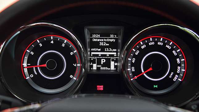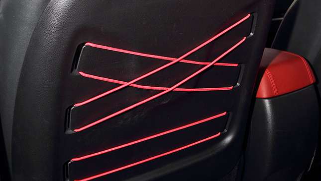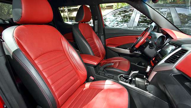 The interior also shows effort, in concept and execution. The red-and-black plastic-and-leather design is a bit of a jolt after all the black or gray interiors usually on offer. The color scheme neatly reflects the exterior styling, and also has you imagining a certain sword-wielding Marvel superhero riding shotgun. A daring interior succeeds or fails in the execution, and in this one, we are again pleasantly surprised. The leather is perforated and pleated in just the right way. Seats are supportive and comfortable.