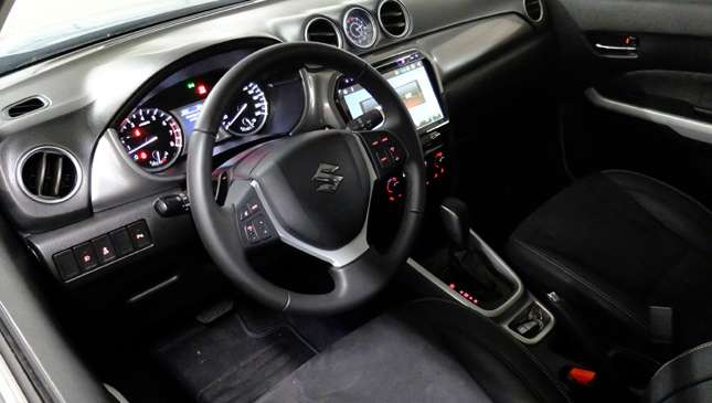The Vitara's cabin fails to impress as much as the exterior by miles. It's not the design, as it's relatively spacious (with good headroom), features a decent amount of storage compartments, and has been made with practicality and good ergonomics in mind. It's the materials. The dark plastics and faux carbon fiber trim feel cheap. Granted, it's not the worst we've come across. But our infatuation with the car's exterior might have caused us to expect a little more.