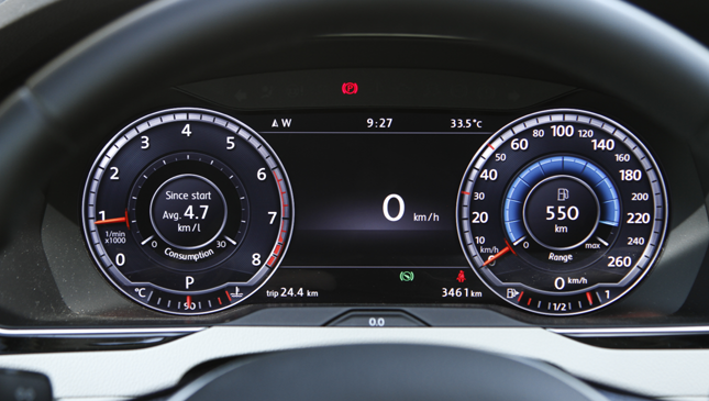The Passat boasts a TFT instrument cluster, which displays the rev counter and speedometer with varying views (classic or incorporated with consumption and range, economy, or navigation), as well as audio, phone, vehicle status, driving information, and navigation.