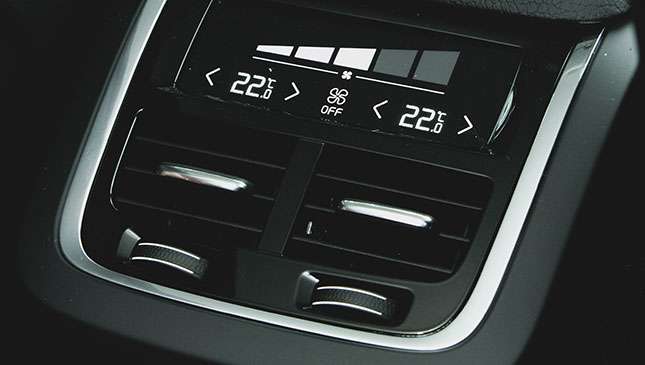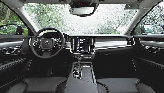 In the back, I have about 7in of knee room to spare with the driver seat left in my position (I stand about 6ft). The rear bench is as comfy as the front row, which makes the S90 thought provoking considering what the 5-Series or the E-Class offer. That said, the Volvo’s ride isn’t as firm as the Bimmer’s or as soft as the Merc’s. The best way of putting it is that it sits between both Germans, without trying to emulate any of them. For alloys, 18in are standard; anything bigger will upset the S90’s demeanor.