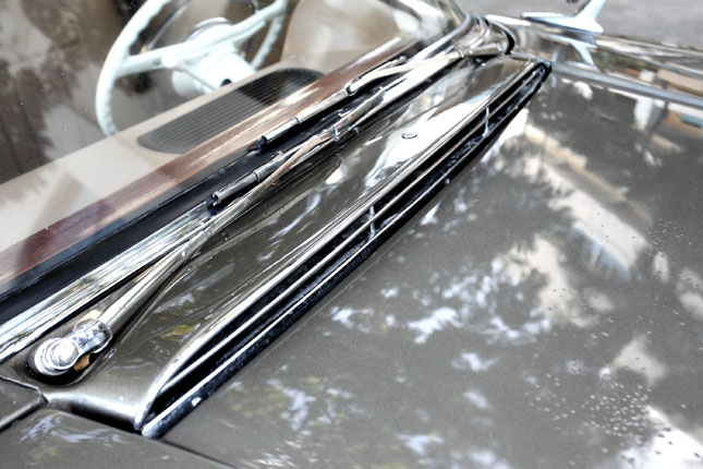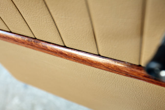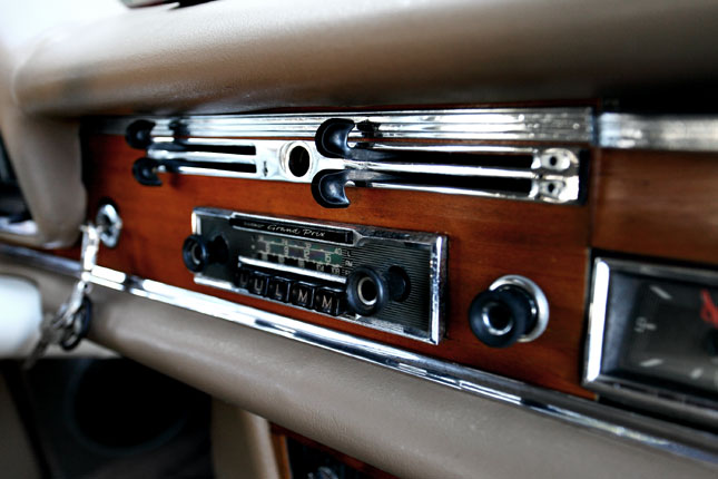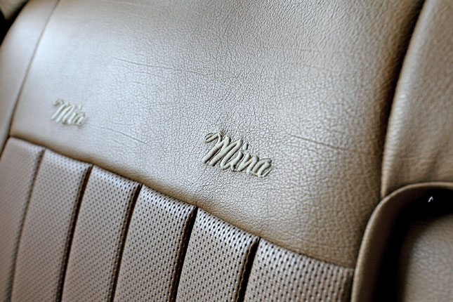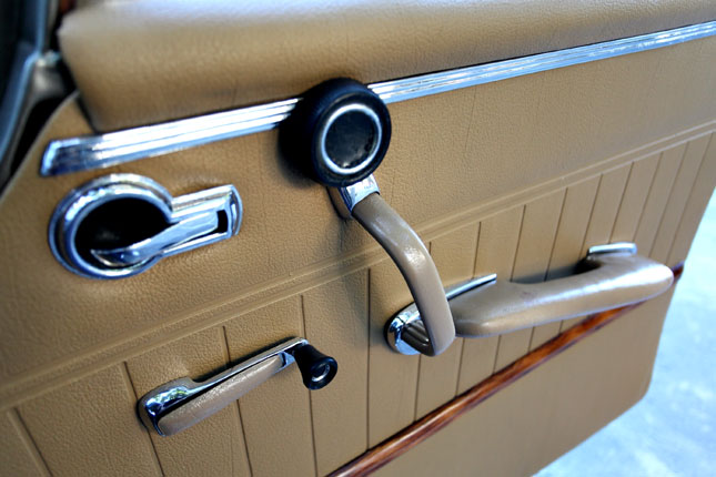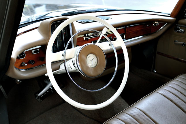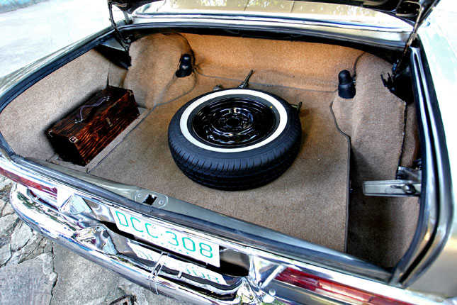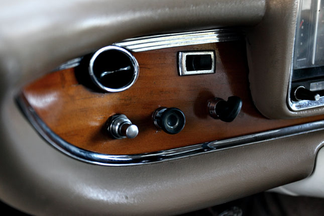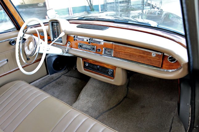 This particular W111 Fintail is the more luxurious long-nose variant. Ivan says that the original straight-six petrol motor with twin carburetors was flooded and rusted out, so the main challenge was replacing the engine. He shares that the car isn't 100% finished yet, but it looks really good to us. It was also Ivan's idea to put the mural in the trunk, and have the names of all of Gob's kids sewn on the seatbacks.