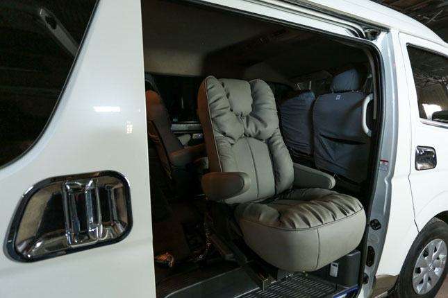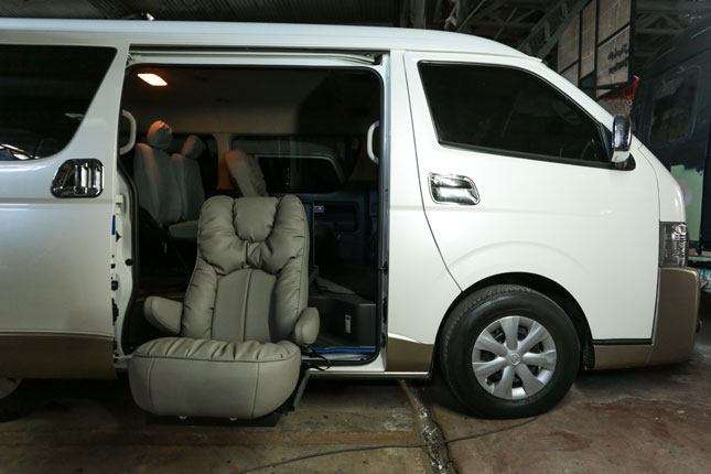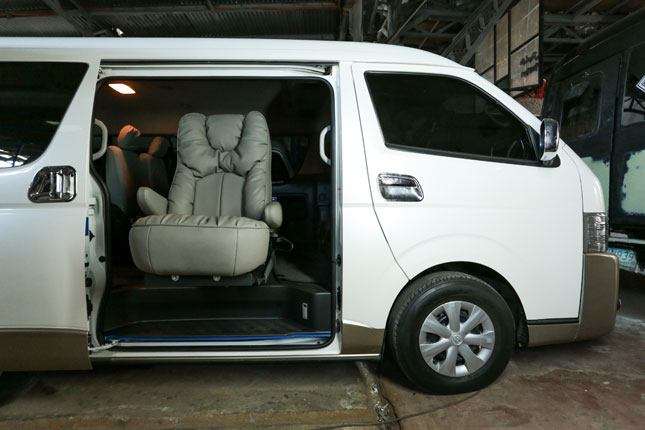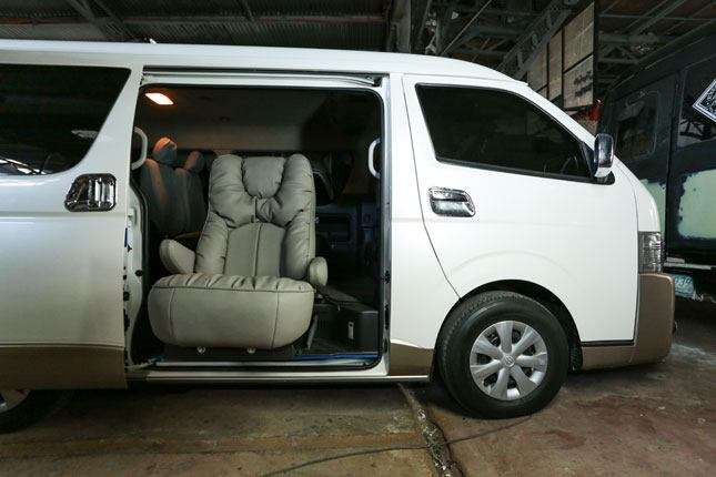 Granted, this kind of custom job is obviously reserved for those who can afford it; you know, the ones who fly business class regularly and thought, "I want this in my ride!" But the custom Hiaces we saw weren't all just about the high life. One van had a custom-fitted chair with a lift for people with disabilities. We like practicality and helping others, too, so this was equally special.