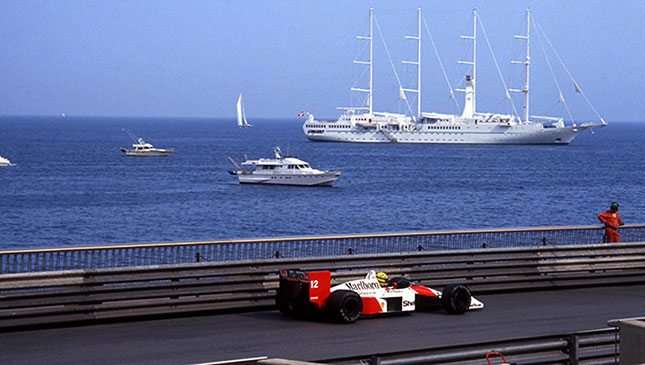 In only his sixth Grand Prix, in Monaco, the rookie Senna qualified 13th, then set about making the rest look silly as the heavens opened on Monte Carlo. Senna’s reputation for finding grip where there seemingly was none was forged on this day in May '84. He was reeling in future nemesis and race leader Alain Prost by three seconds per lap when it was red-flagged. Job done.