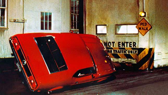 Two crews and two locations were used to shoot the most ambitious stunt in Diamonds Are Forever’s Vegas-based Mustang Mach 1 chase. Unfortunately, when it was stitched together, someone noticed the car drives into the alley on its right wheels, and reappears balanced on the left. Ah. A hilarious, unexplained in-car shot was inserted to show the ‘Stang apparently rotating within the alley, rather than reshooting the trick.
