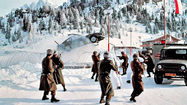 The Renault 11 (the hatchbacked version of the sedan Renault 9) probably doesn’t seem like the ideal car for Bond, seeing as it’s got the appeal of a brown sofa. But when it’s 1985 and you have to chase a very scary woman called May Day (Grace Jones) who has just paraglided from the Eiffel Tower in Paris, a commandeered Renault 11 taxi is apparently just the job. This is the car that became famous for its ability to keep going even after sustaining grievous injury: first the roof gets lopped off as Roger Moore’s Bond drives under a truck, then the rear half of the car gets amputated when it gets hit by another vehicle.