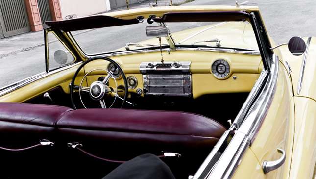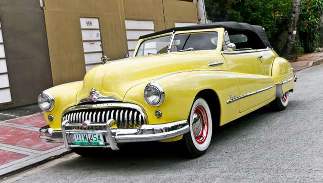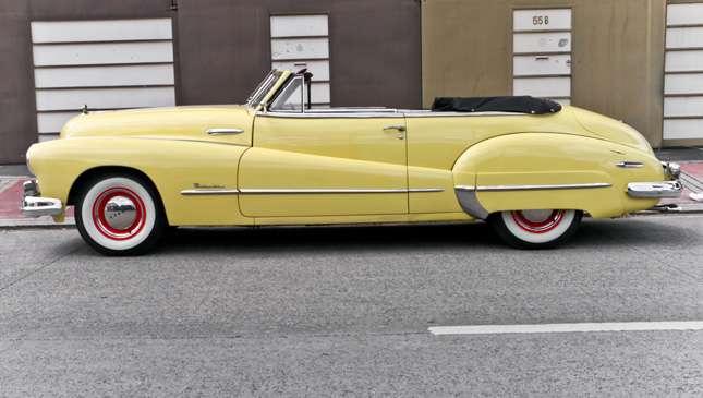The example you see here is a 1948 convertible owned by Alfred Perez. When it was brand new, it had sweet features for its time, like a 150hp 5.2-liter in-line-eight engine, a power soft-top, and a Roadmaster series script on the front fenders. But the most innovative feature was the optional Dynaflow automatic transmission, which was the first torque-converter transmission in a passenger car. It was so popular that by the following year, it was standard equipment on the Roadmaster.