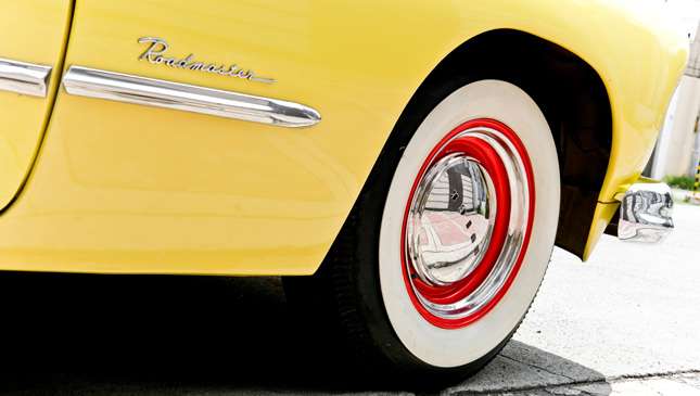 In the flesh, this Roadmaster is the textbook definition of a lovingly restored classic. The yellow paint is timeless and eye-catching. The chrome hubcaps and other trim pieces are shined to a mirror finish. The period-correct (though ever-so-slow) power soft-top works without a hitch; the leather seats are as plush as can be. Most important, the almost-impractically-long straight-eight engine starts at the first turn of the key.