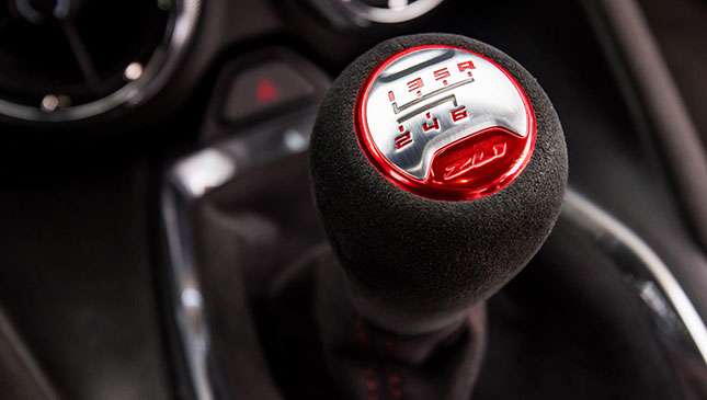 Mostly chassis and aero based. The engine remains as is, the gearbox—a six-speed manual with rev matching—gets a shorter sixth gear to make it more racey. And you can’t have an auto. But there are extensive mods above and below the surface elsewhere. It gets a bigger front grille and the daytime running lights are deleted to save weight and further improve airflow.