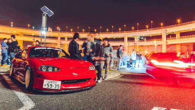 Welcome to Daikoku PA. By day, an unassuming service station car park on the outskirts of Yokohama, Japan. A place where drivers and truckers stop for some ramen and a rest.