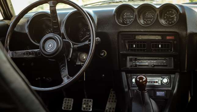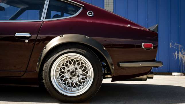 The interior is custom leather contrast stitched in exactly the same pattern as the fabric and seats that came with the Z from the factory. This was all done at Gerald's own restoration shop, Autowerkes. While the shop usually does accident-damage repairs for insurance agencies, it also handles a lot of old-schoolers. Being a stickler for detail, he personally supervises all the restoration work, including the fantastic refinishing job on the 280Z's paint. It's an immaculate sight. Oddly, however, the Z still sports its original, worn steering wheel, because Gerald "wanted something original left inside the car."