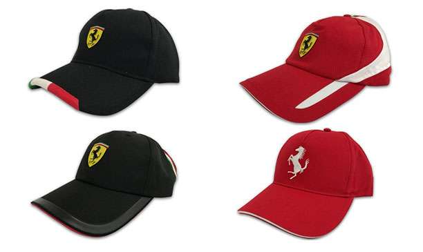 Ferrari caps (P2,100 to P2,500). You can choose between a handful of designs including Italian Passion, Mesh Visor, and Rubber Striped. All caps come with the iconic Scudetto patch and are available in either red or black. A subtler version in red with an embroidered Prancing Horse is also abailable.