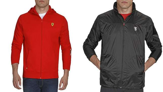 Ferrari sweaters and jackets (P5,200 to P10,200). Available in a variety of styles and colors, including a three-layer Scuderia rain jacket with reflective stripes, and a unisex training jacket. All come with the Ferrari logo up front.