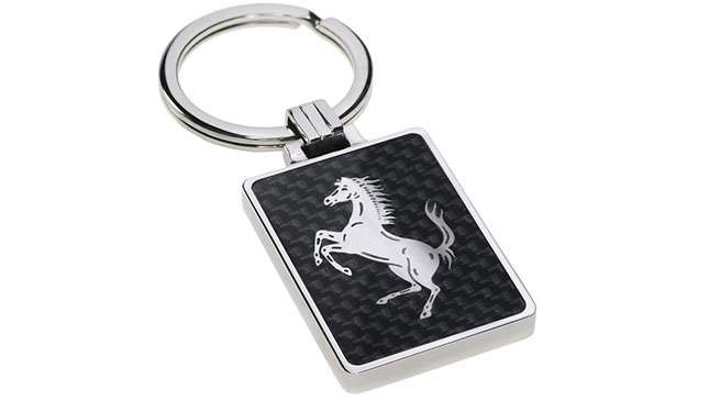 Carbon Fiber 'Prancing Horse' key ring (P4,350). "Ooooh, Shiny." It's handmade in Italy, and made from 95% metal and 5% carbon fiber. "Small in size but big on statement," the company calls it.