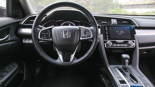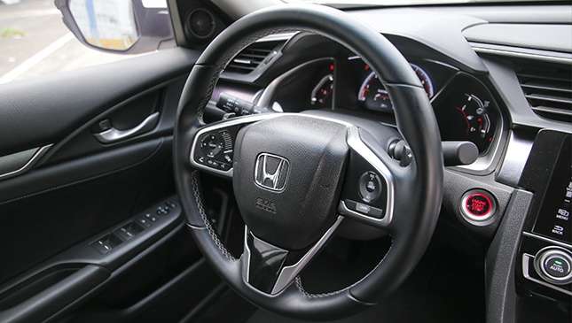 Don't let its smaller displacement fool you. The Civic RS's 1.5-liter engine packs a turbocharged wallop, delivering a sprightly 174hp and 220Nm, as well as much-appreciated punch during overtakes. Acceleration is quick and the throttle is responsive, providing drivers with a sense of confidence with every prod of the pedal. Paddle shifters are a plus. Fuel efficiency is pegged at a little below 7km/L in city driving--would've squeezed more out of it with Econ Mode on, but nah.