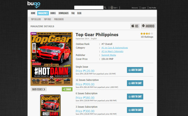 3. Go back to the Buqo.ph store and select the magazine or book you want to buy, which is Top Gear Philippines in this case.