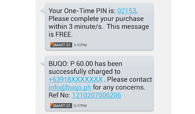 9. When you've confirmed your purchase, a text message will be sent to your mobile phone, informing you of the purchase as well as the amount deducted from or charged to your account.