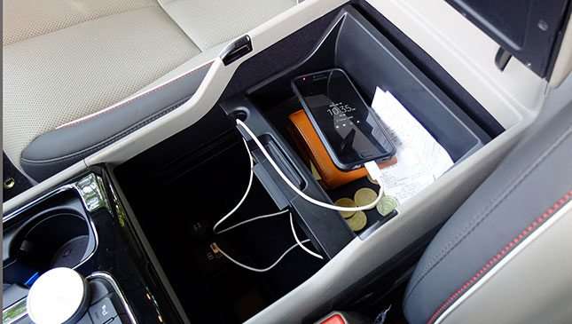 3. Everything's in its place. Finding cupholders for your drinks or places for your devices is a cinch, as there are plenty of them scattered throughout the vehicle. The center console features a practical design and sliding compartments, allowing driver and front passenger to charge their gadgets free of obstructive cables.