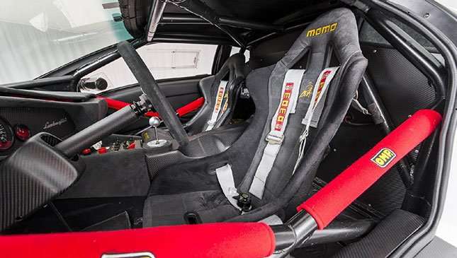 Standard buttons were replaced with racing switches, while a fire extinguisher system from Momo was mounted on the right side of the cockpit with the option of turning it on with a button located on the central tunnel. We recommend doing that only if a fire is present. And the already custom steering wheel of the Diablo GT was replaced with an even lighter and racier Momo setup.