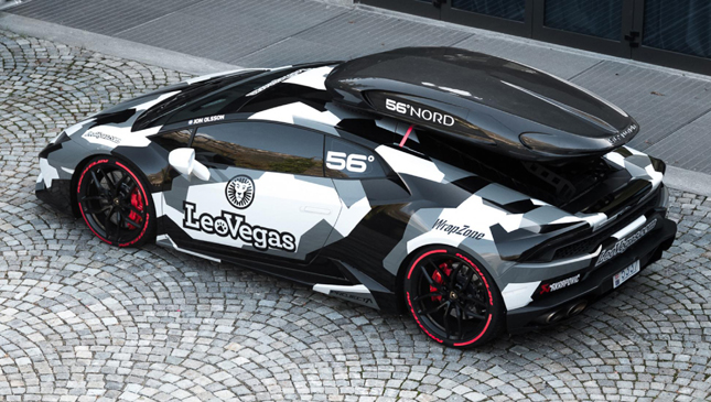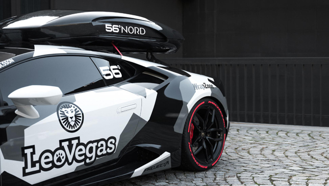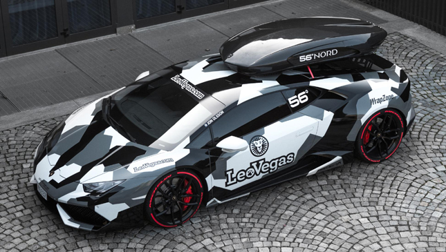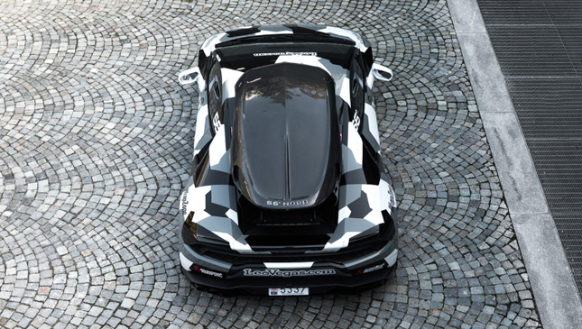 This is his latest daily driver, an 800hp Lamborghini Huracan. Again wrapped in camo with a roof box plopped on top. Yes, and yes.