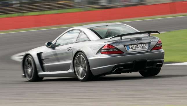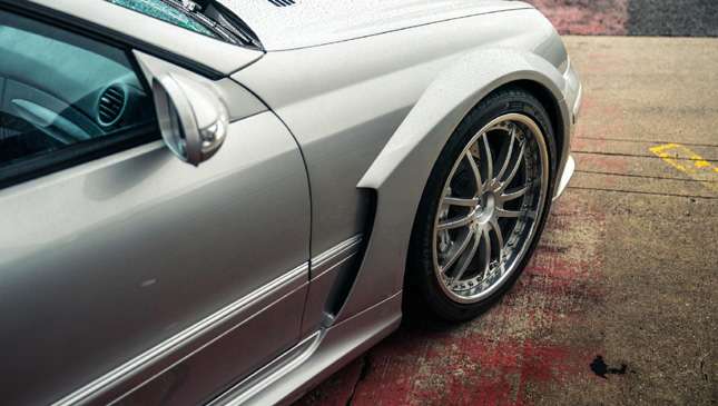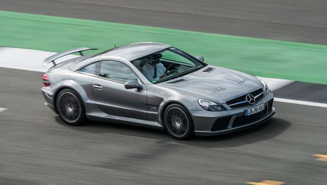 As if sheer guts wasn’t enough, AMG also hacked 250kg out of the regular SL65 AMG’s weight. The folding roof has gone, replaced by a carbon fiber fixed top. The widened body has a lot of carbon too: Open the fuel flap and you can see it in the cartoon-wide rear wings. And under that reside fully-revised suspension and tires.