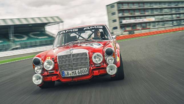 The Mercedes 300 SEL 6.3 was the world’s fastest four-door in the late '60s. But it was in no way a sports car, let alone a track machine. AMG expanded the V8 to 6.8 liters and tuned it for 428hp. They gave it aluminum doors. You get in and there’s still a plush leather sofa of a back seat, luxurious door trims, thick carpet, and a plank of a dash. Anyway, they took this unlikely warrior to the Spa 24 hour race in 1971. Everyone laughed. They called it the Red Pig.