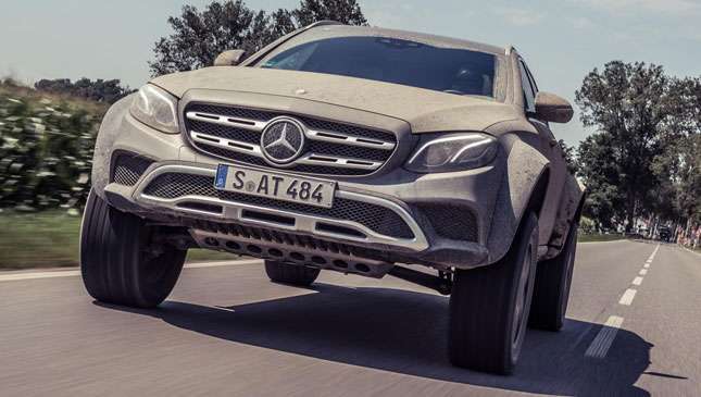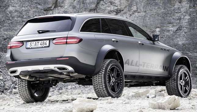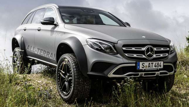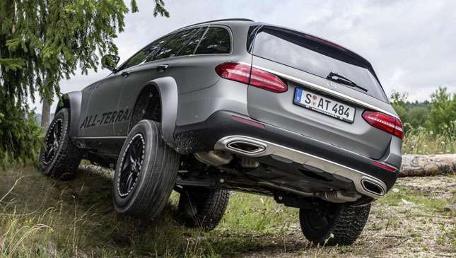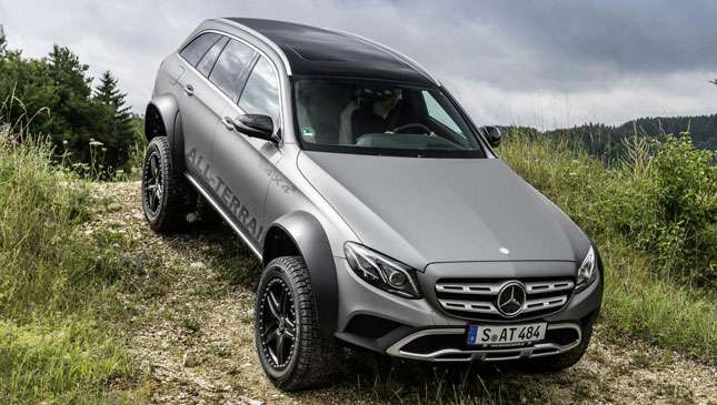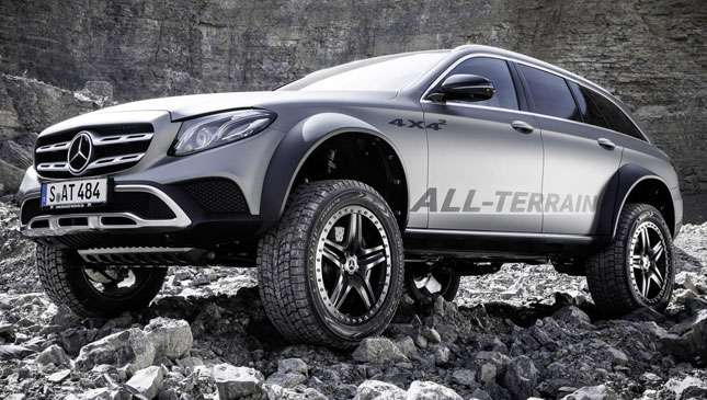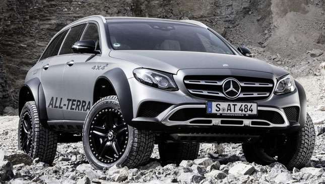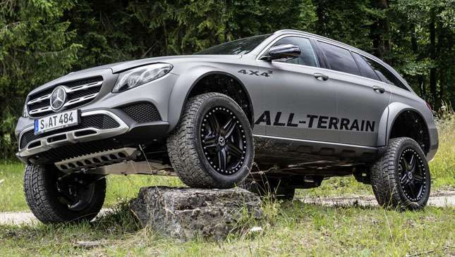 It’s a Mercedes-Benz E-Class All-Terrain given the almost-familiar ‘4x4²’ treatment. Which, in case you didn’t notice the G-Wagen 4x4², means portal axles and more stance than is comfortable when parking.