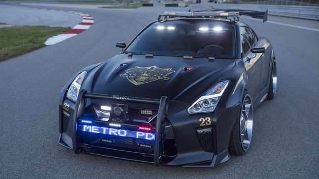 Unlike the legendary unicorn R34 Skyline cop car in Japan, this certain R35 GT-R isn’t set to go on the beat anytime soon. Instead, it’s a one-off show car from Nissan for the upcoming New York motor show. However, it does have bull bars, lots of lights, and a scrolling LED bar in the front to pull help people over (or reel off Biggie Smalls lyrics at an outdoor karaoke party), so count us interested.