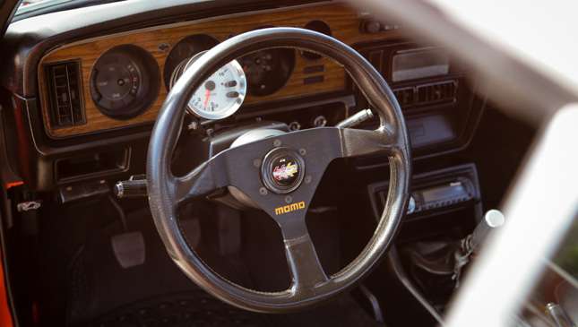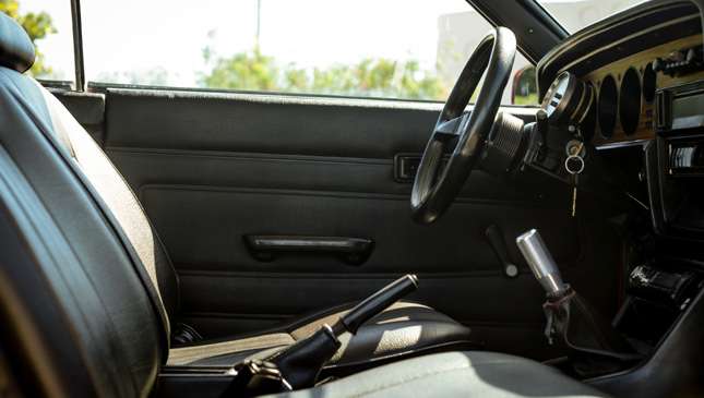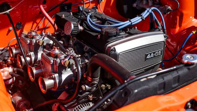 True to form, Bochet couldn't leave well enough alone with the 4AGE. While it still remains stock internally, save for a mild port and polish, it boasts a neat custom exhaust and dual Weber 40 carburetors, polished velocity stacks hinting at fire-breathing potential. The motor takes pride of place in an antiseptically clean engine bay, with much of the wiring tucked neatly away. Power goes to the ground through an AE86 rear limited-slip differential and relatively mild 175/50 R13 rubber wrapped around 13-by-8-inch Rota banana-type wheels.