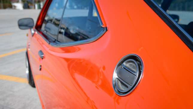 The car is also lowered a bit, but not 'stanced' to death. Electric orange paint aside, it's a subtle, understated build that grabs you with its attention to detail. No savage street racer, this one--it's a daily ride that’s a delight both to look at and to run.