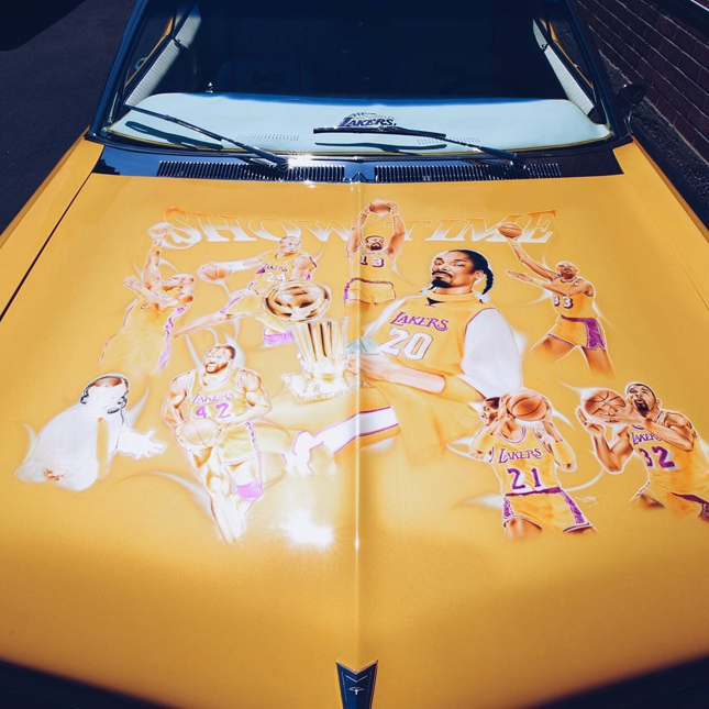 Well, LA-based rap icon Snoop Dogg surely gave it a try. Snoop gifted the retired basketball legend with a one-of-a-kind Lakers-themed Pontiac convertible. It features a purple-and-yellow paint job, an all-white interior, and a detailed mural of Bryant with Magic Johnson, Kareem Abdul-Jabbar, Wilt Chamberlain and, er, himself.