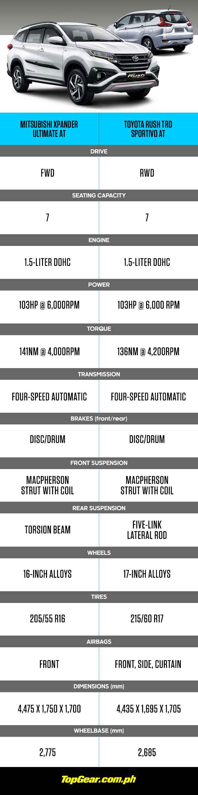 Check out the tale of the tape below and choose your winner. Do you want to see the Xpander and Rush face off on our streets?