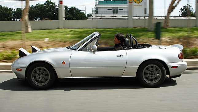 There’s a lead-up to before I drive it (which is pretty much every day) and this series of events has become ritual. During the elevator ride down to the basement parking lot of my building I’m already holding the key in my pocket in anticipation. As I walk toward the parking space where my silver-hued MX-5 is resting, I’m admiring it from afar. Its soft and simple curves, 14in Black Racing banana-type alloy wheels, and low ride height look so good to me. I have not altered a single thing on this car for fear of messing with perfection. Previous owner Carlo Ablaza’s signature style will always remain.