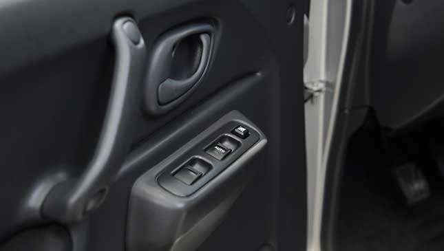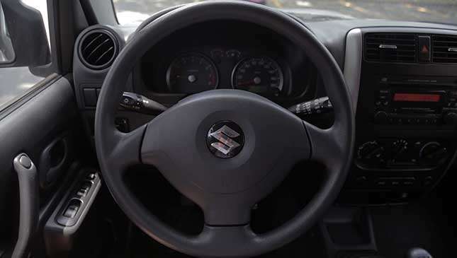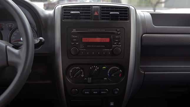 2) Driving it is an old-school experience. It already looks old-school, so it's no surprise that the drive feels that way, too. Manual transmission? Check. Stiff clutch? Check. Throwback steering system that makes you groan at low speeds? Check. Everything about how the Jimny runs, from the recirculating ball with hydraulic assist to the five on the floor, will bring you back to a bygone era. Even the center controls consist of big, bulging knobs and buttons. There are some modern touches on this top-of-the-line model though, like power windows and buttons to activate the 4x4.