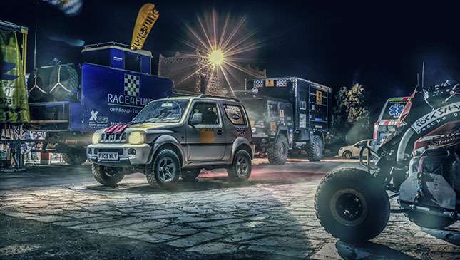Now let me introduce you to John Cockburn. He still has a proper day job—driving race trucks for Peugeot on the Dakar and such like. But he, too, realized that normal people wanted to have a go at desert rallying, so a few years back he started buying Suzuki Jimnys and throwing rally components at them. Some of them even stuck.