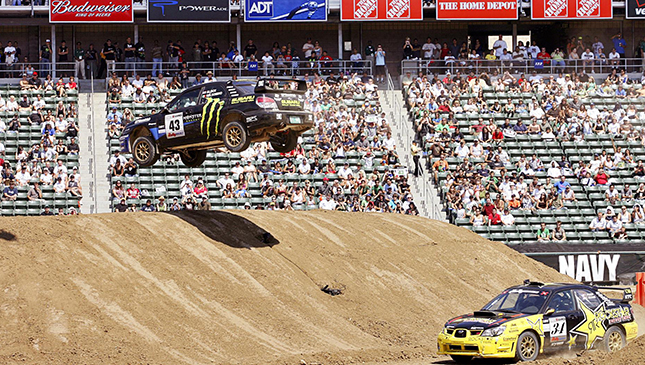 The one that started it all. In 2008 Block took his 530hp 2006 WRX STI to an airfield, gunned it down the straight and then, without warning, flicked it into a massive drift that changed everything. Gymkhana 1 has 15 million views and counting.