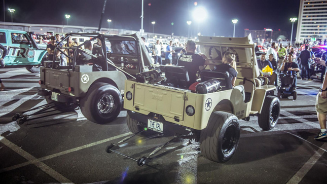 It might actually be less. But when stood directly behind a drag racing Willy’s Jeep—right in the line of fire of the aggressive anti-lag system—the methanol firework show that occurs with a wide-open throttle is apparently enough of a sensory overload that a runnel of blood can gloop out of your nostril. Well, that’s what happened to me.